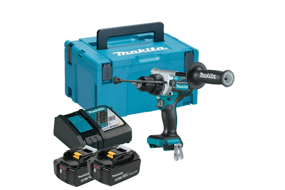 Batterijcapaciteit 18 V / 5,0 Ah Gemiddelde oplaadtijd 45 min hard koppel 115 nm boorkop 1,5-13 mm aantal accu's 2 x BL1850B gewicht 2,7 kg