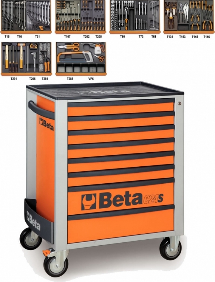 Beta Tools C24S/8 O + 5904VI/3T Gereedschapswagen | Gevuld | 8 Laden | Oranje | 142 Delig Set