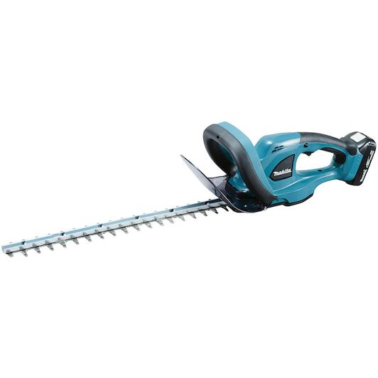 De Makita DUH483RFE 18V Accu heggenschaar is de ideale oplossing voor tuinieren, met een bladlengte van 480 mm en een snijlengte van 48 cm. Deze snoerloze heggenschaar biedt een efficiënt trillingsdempingsysteem en heeft een laag geluidsniveau, wat het gebruik aangenamer maakt. De heggenschaar is voorzien van dubbelhandige veiligheidsschakelaars voor extra veiligheid, en een elektrische rem voor maximale productiviteit. Het accubeveiligingssysteem schakelt automatisch de stroom uit als het accuniveau laag is, wat extra veiligheid biedt. De set wordt geleverd met twee 3,0 Ah Li-ion accu’s en een snellader. Het gereedschap is ook voorzien van een duurzaam bladoppervlak voor een langere levensduur.