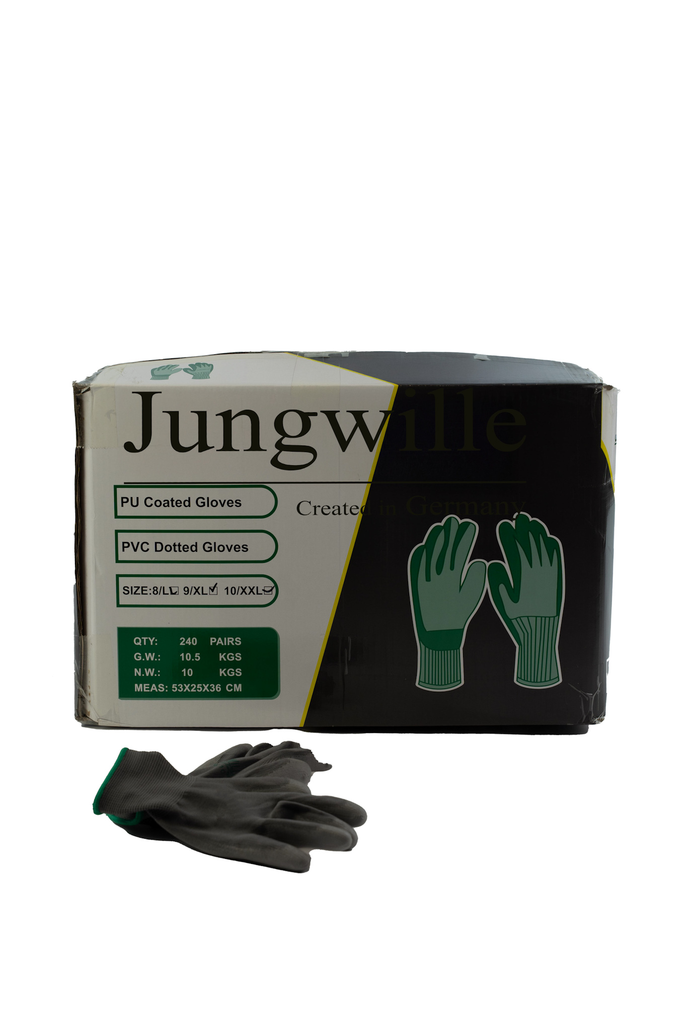 De Jungwille PU coated, PVC dotted handschoenen bieden de perfecte combinatie van bescherming, grip en draagcomfort – ideaal voor professionals en doe-het-zelvers.
